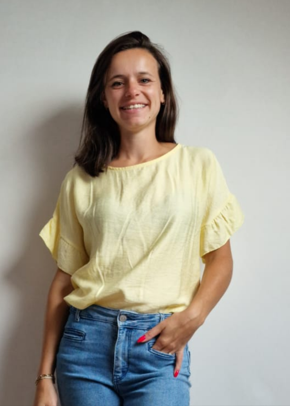 Deze elegante top voelt heerlijk zacht aan dankzij de flexibele viscose en valt luchtig om het lichaam. De speelse vleugelmouwen geven de look een dromerige, vrouwelijke touch — perfect voor zowel casual als chique gelegenheden. Makkelijk te combineren met jeans, een rok of een nette broek.