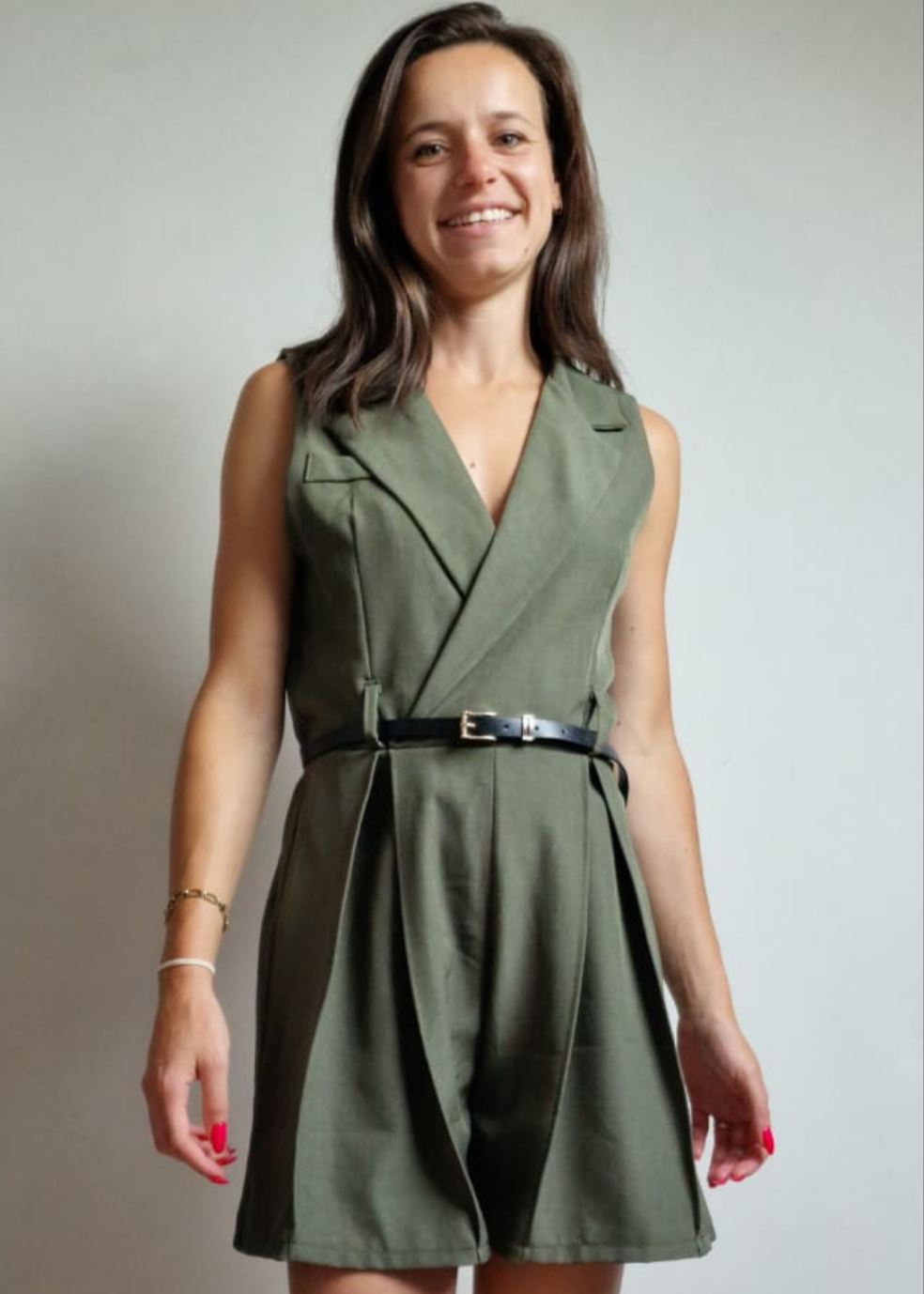 Stap stijlvol de dag in met deze trendy combishort! Het geklede model met blazerrevers geeft een sophisticated touch, perfect voor zowel een zakelijke brunch als een avondje uit. De inbegrepen fijne zwarte riem accentueert je taille en maakt de look helemaal af. Combineer met hakken of sneakers voor een effortlessly classy outfit.