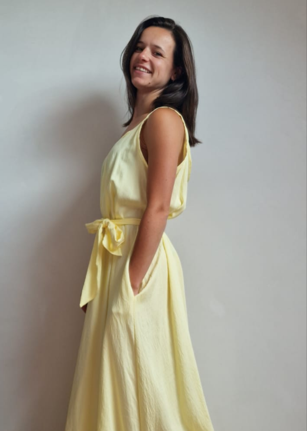 Deze zwierige jurk is een echte eyecatcher! Het losse, comfortabele silhouet valt soepel om het lichaam, terwijl de diepe V-rug subtiel verleidelijk is. Perfect voor zomerse dagen, een strandfeest of een stijlvolle citytrip. Combineer met een sneaker voor een relaxte vibe of hakken voor een elegante touch.